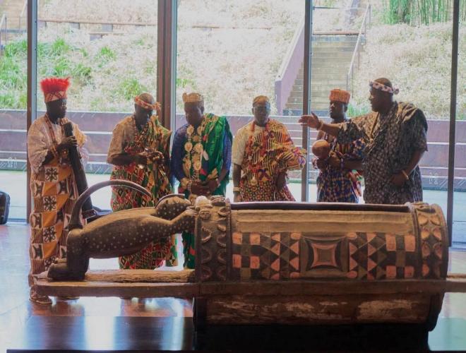 Après cent dix années d’exil forcé, le tambour parleur sacré du peuple atchan, le Djidji Ayokwè,...